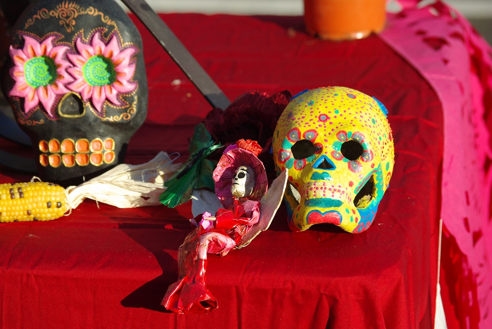 Tonight I thought I’d share an interest of mine, I’m quite fascinated with Dia de los Muertos, The Day of the Dead (DOTD). I really love the idea of remembering loved ones who have passed on with an altar as well as gifts for the dead. It’s a way of staying connected with family and friends who are no longer with us. There is of course much more to the holiday and I hope some day to spend the holiday in Mexico where the festival is really large and well celebrated. Until then I visit a local festival each year and collect art work related to the holiday.