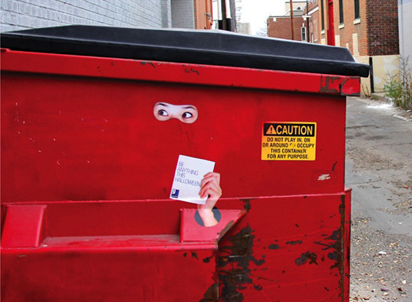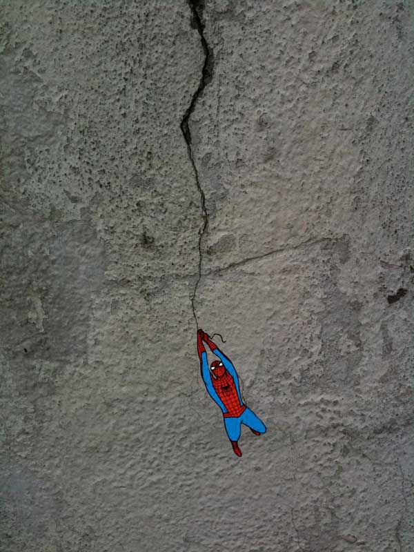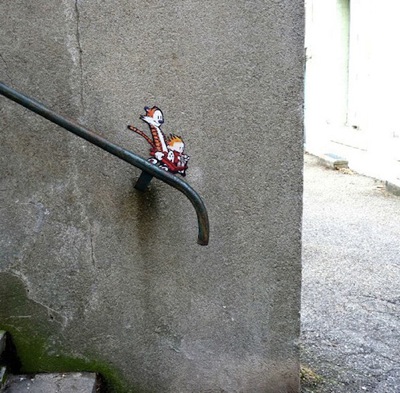 I’ve always had an affinity for something that I call integrated street art. By this what I mean, and you’ll get it when you look at the images, is street art that integrates naturally occurring features of the landscape including, meters, street signs, bent bars, etc… So tonight I did a search across the web for some really cool images, have a look, enjoy and have a happy day my friends ~ Rev Kane
