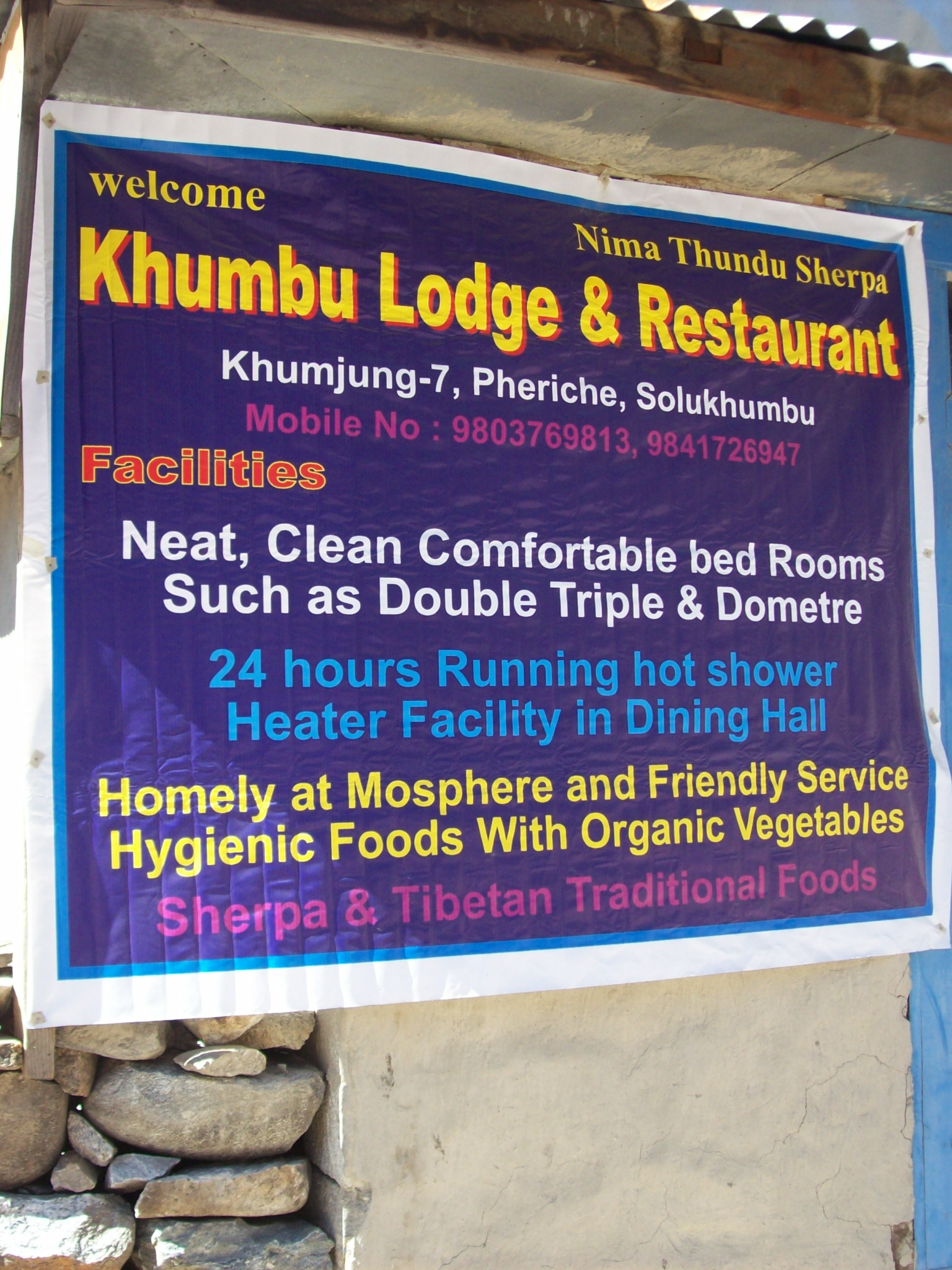 We had a couple of people in the group who haven’t been feeling well, a number of people in the group had a chest infection. We hiked up to the Periche Aid station today to get people checked out, happily everyone turned out to be ok. Also in Periche I saw my favorite sign in the Himalayas, here it is: