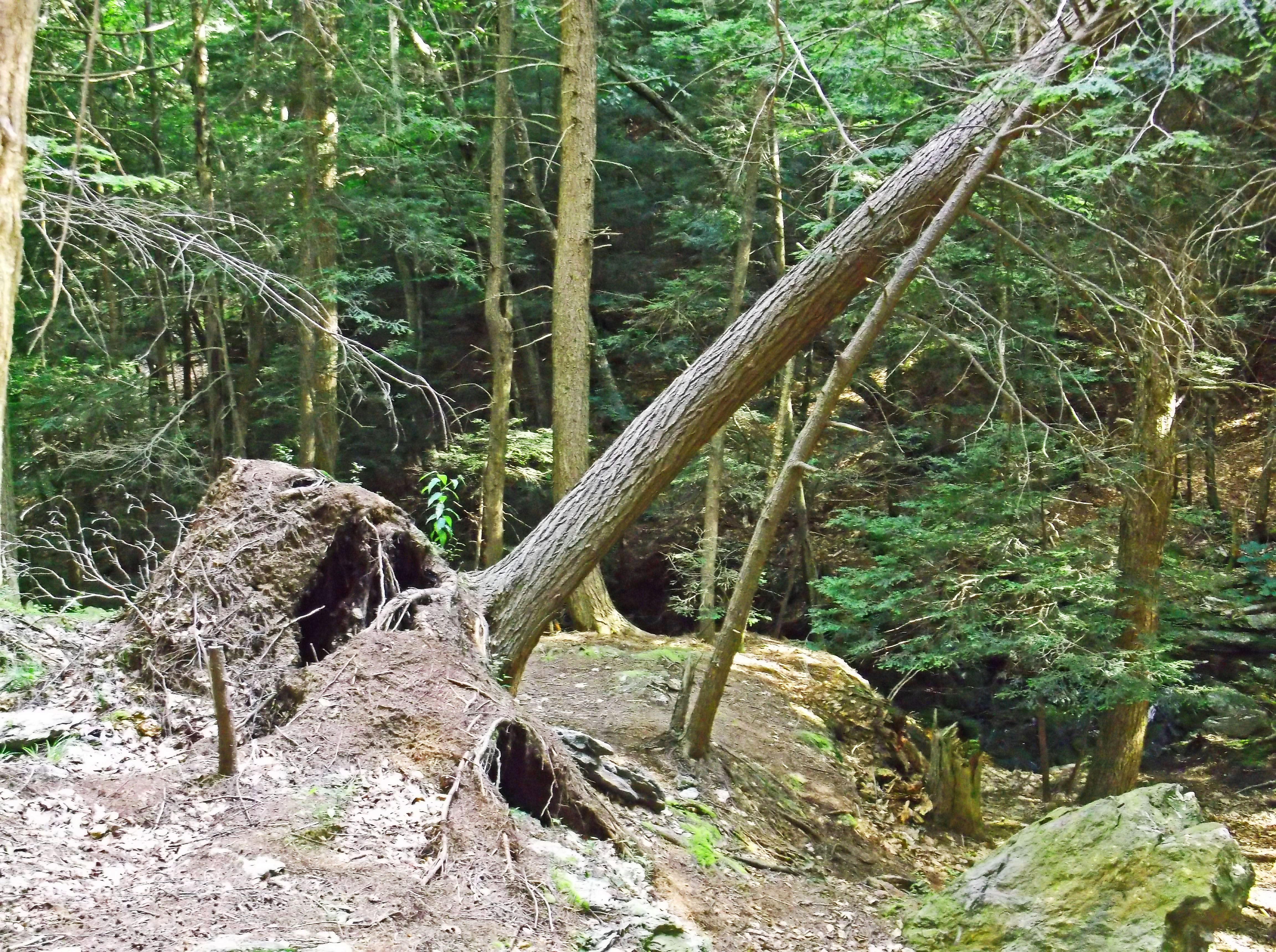 Sometimes on the trail you just hit a place that really works for you.  One of these places for me recently was Brassie Brook Shelter in Connecticut. I had been back on the trail for about three days and that particular day had been a good one.  I hit the shelter fairly early around 1:30 in the afternoon and decided to eat lunch and then figure out if I still wanted to continue on for the day.  The odd thing is that two shelters, Brassie Brook and Riga are only a tenth of a mile apart.  Riga had a bigger shelter but Brassie Brook had more camping space so I opted for the latter.  Good choice! The shelter area was a hemlock forest, a recent straight line wind had cut a path through the camping area so there was one area of big downed and broken trees.