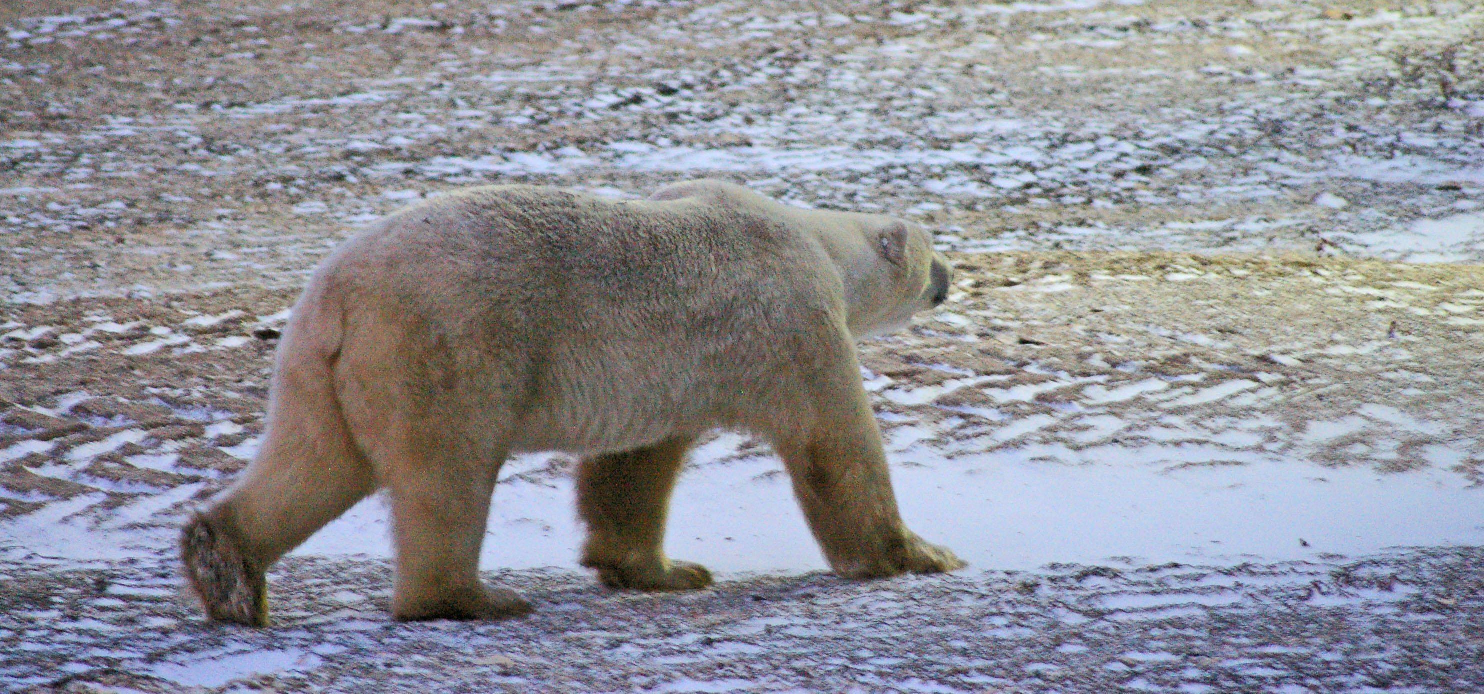 A little bit of polar bear biology, polar bears hunt on the Arctic Sea ice flows. Their primary food is the seal, they find air/escape holes and stalk the hole, when a seal pops up, voila, dinner. They do hunt in other ways, running down not so smart humans on the ice, jumping off ice onto prey in the water, they are great swimmers, they also scavenge a lot. However hunting seals on the ice is their primary source of food. So as you can imagine, Summer, kind of sucks for a polar bear. They can handle temperatures well into the minus category and hunt off the ice, so sunny days even in the 40’s and 50’s are brutal and the lack of ice makes food scarce. What this typically means is that most polar bears spend months off of the ice eating little or no food.