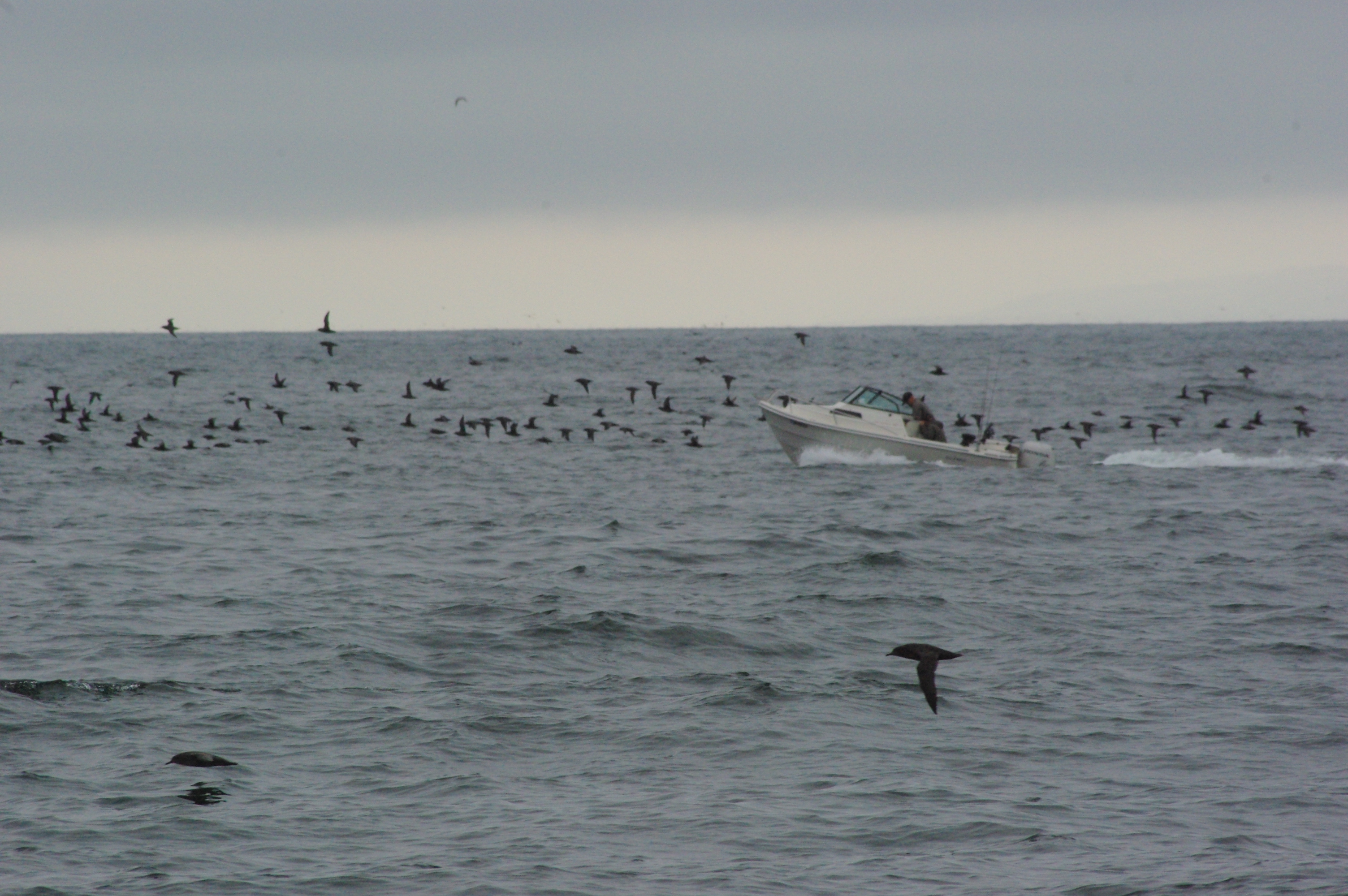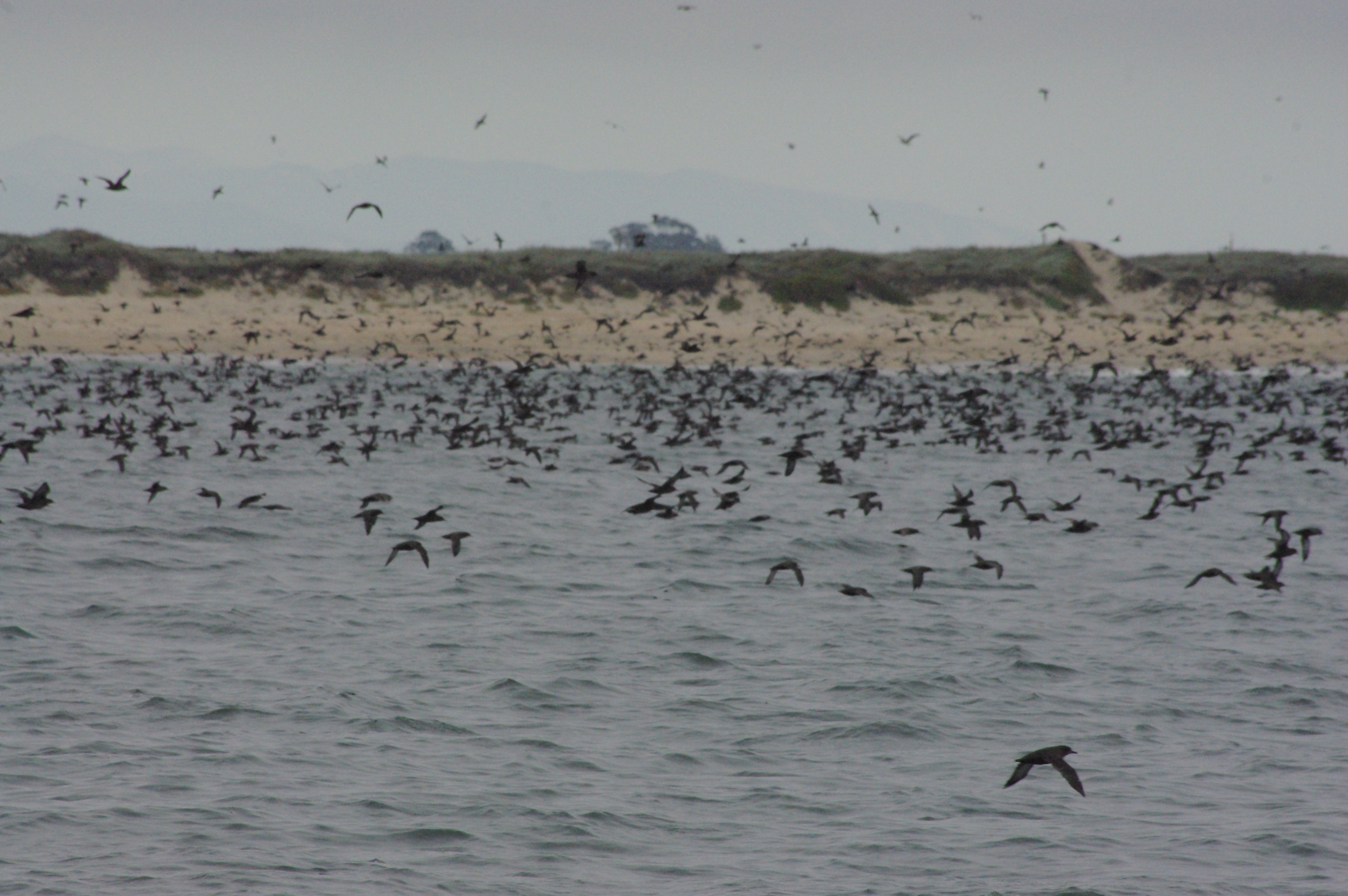 and most excitedly on the way in we saw a flock of 60,000 shearwaters. These birds who travel the Pacific in these giant flocks from time to time get sick. One year, as the flock was ill, the birds skidded in land to a town named Capitola on the California coast. They were everywhere, disoriented and slamming into buildings and windows, birds filled the town, it was damn near apocalyptic. And in the middle of it all was a man named Alfred Hitchcock. Seeing this massive flock I absolutely believe that story as the inspiration for the movie The Birds.