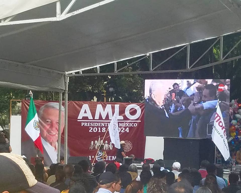 The presidential inauguration broadcast publicly in the Zocalo