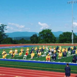 The school did a fantastic job, as you can see from the photos, the graduates were spaced following social distancing rules on chairs on the football field.  The parents, were asked to wait in their cars and were called to the stands corresponding to the row that there student was in.  So every student’s parents got to view the moment their student collected their diploma, got to cheer for them and take a picture.  On stage the moment they got their diplomas was the one moment they got to take their masks off.  A small moment of normalcy in a very not normal senior year.
