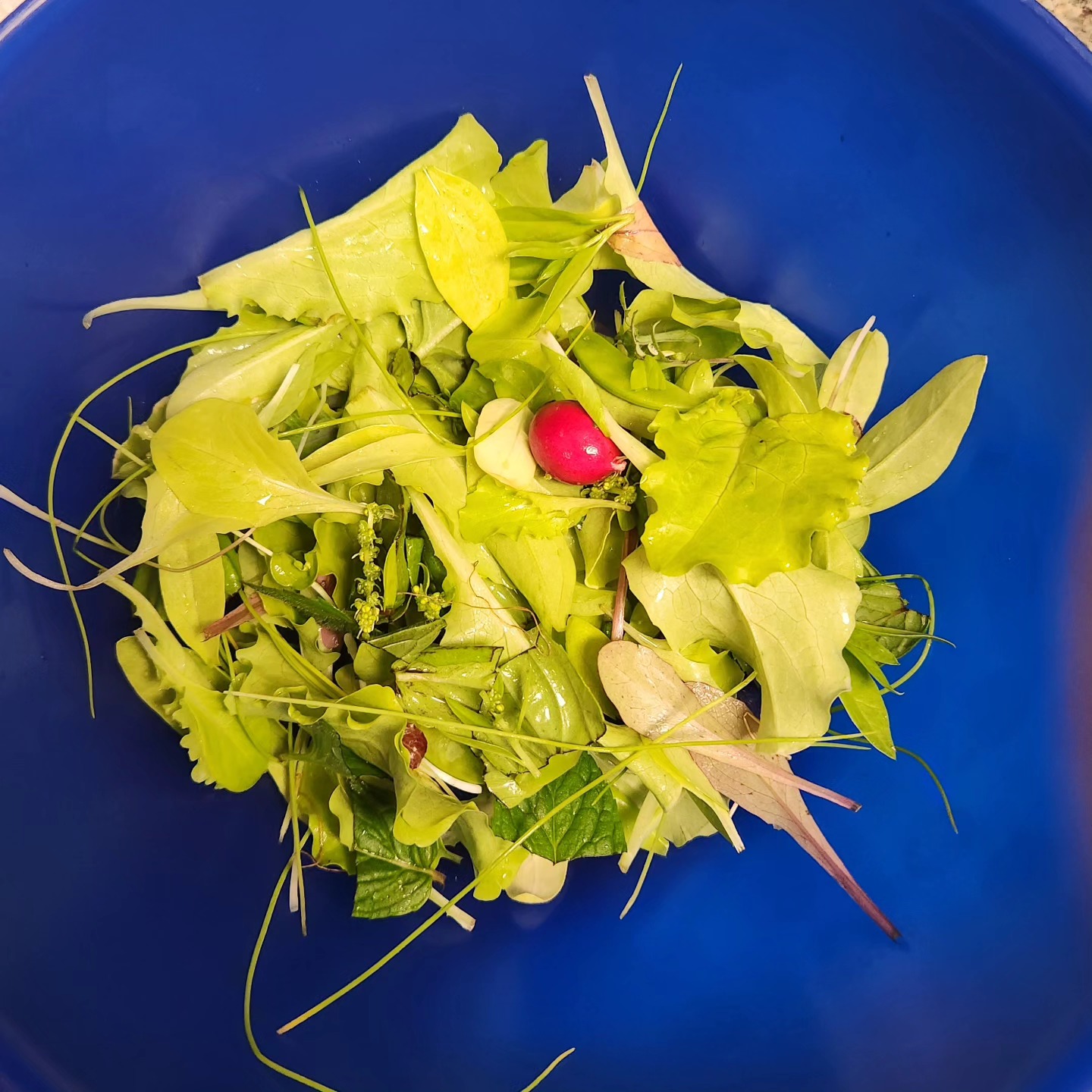 This weekend I had the pure joy of eating a bowl of salad purely from the garden.