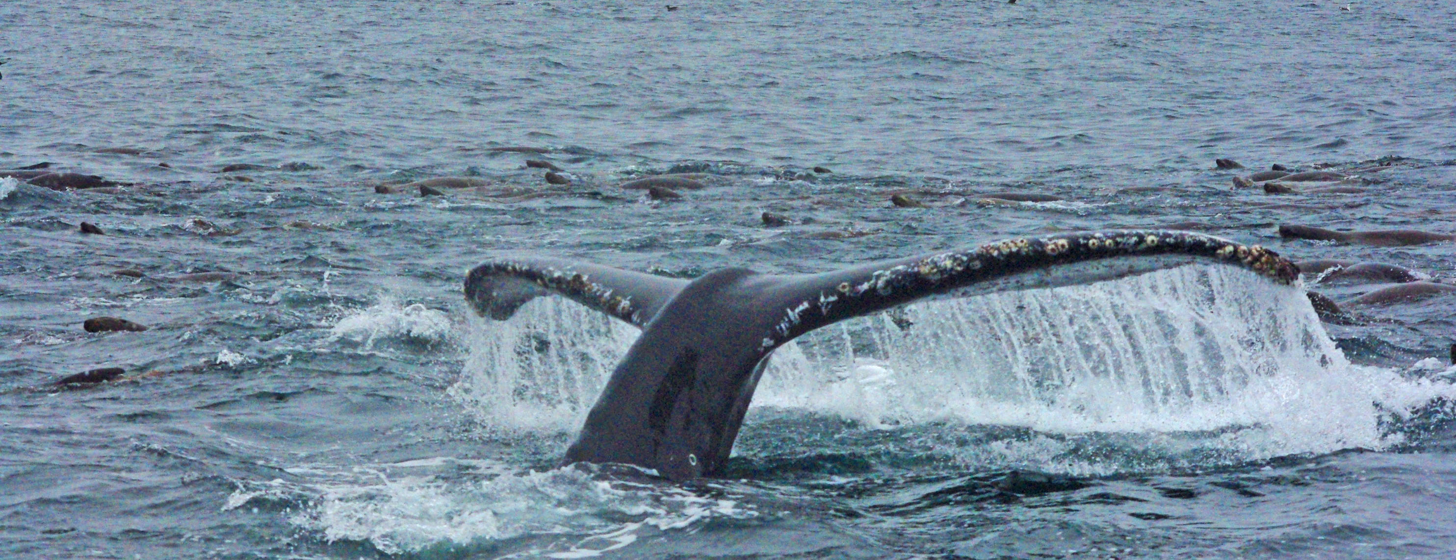 We would see a total of eleven humpback whales, several of them did full body breaches and one lovely tail lob. At one point the dolphin super pod, five whales, all of the sea lions and flocks of birds were all feeding in the exact same spot, it was an amazing display of nature.