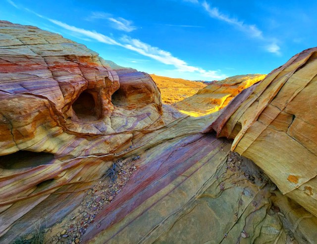 Finally, I’ve come to really avoid the typical image of Christmas. Snow and cold and being caught in the house with bad weather is the worst possible thing for my mood, especially if I’m trapped with people. So my Christmas ritual has become to head for the desert. At Christmas most years you can find me camping somewhere in the Mojave. The ability to have warmth and sun, typically with cool nights for good sleeping, lots of stars and a camp fire to sit around after hiking all day and eating great food really is one of my happy places. This year will be no exception and I’ll be returning to someplace I went for the first time last year, Valley of Fire State Park in Nevada.