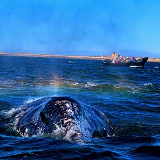 The really amazing thing about this place though is that the whales have become incredibly curious about humans, to the point of wanting to interact with them. This time I was there near the end of the season, the males had moved on and it was just mothers and calves left in the lagoon. These little babies are already eight to twelve feet long. The whales seem very comfortable being near the boats and very curious about the critters in the boats. The baby whales especially spend a lot of time swimming up near the boats and playing with the people. Often people on the boats splash water at the whales hoping to attract them. And the whales seem to really dig this. Probably the coolest interaction I had this trip was a baby whale that we were splashing a couple feet from the boat who appeared to love it. The little whale stayed at the surface while we splashed it, and even rolled over so we could splash it’s belly. All the time this little whale was looking right at us making full eye contact the whole time.