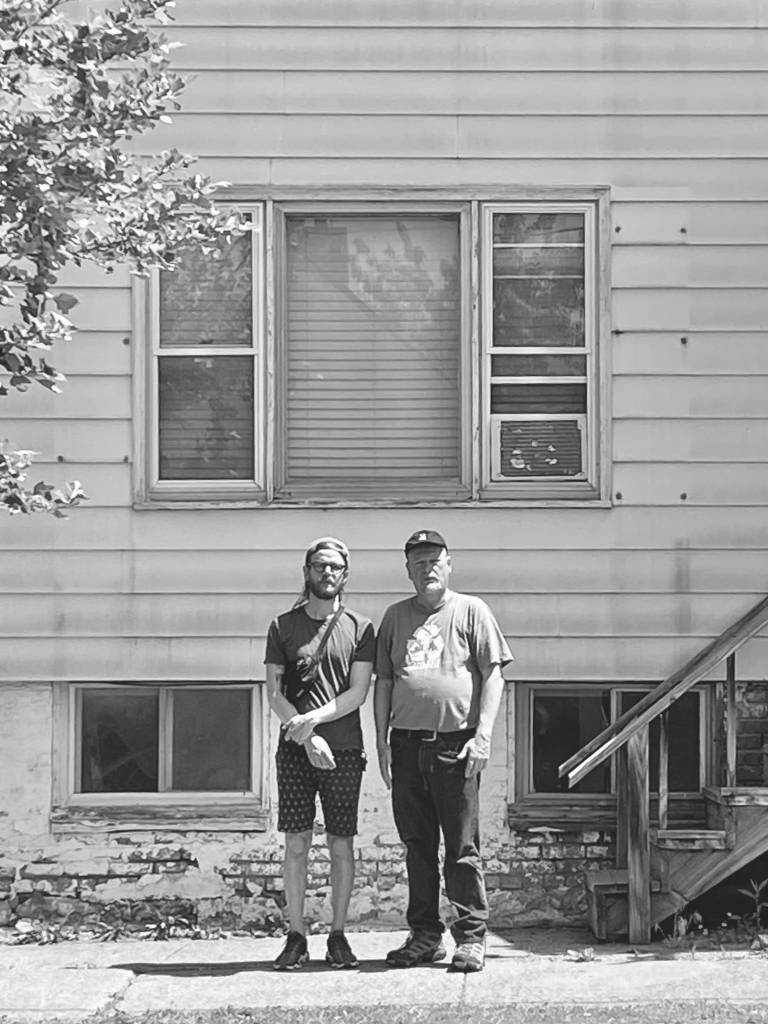 My brother and I in front of the house we grew up in, I hate how I look in this photo
