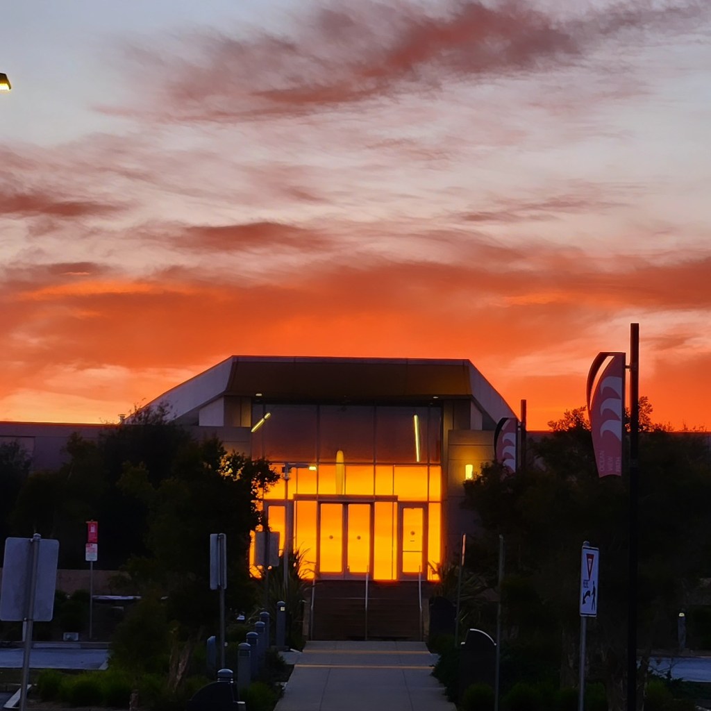 As I was leaving work today, the sun was setting over the ocean and lighting up a building on campus. It had this crazy glow from inside, made the building seem like it was coming alive.
