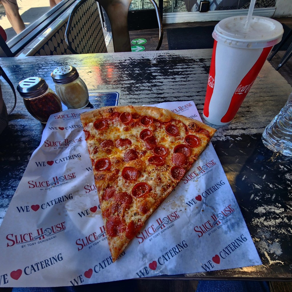 The beauty of my route this day was that rolling through the Haight I would pass two pizza places, an outpost of Tony’s Slice House, which I’ve reviewed on the Pizza Page, and a place I’ve been meaning to get to that gets a bit of press, Escape from New York. Finally, the walk back to BART would take me back past Gioia Pizza, the best NY slice in San Francisco and pictured at the top, couldn’t wait to take a bite before I took the photo. Tony’s Slice House, an outpost of Tony’s Napolatana in Little Italy, is always a bit disappointing to me. Tony Gemignani, the owner, is maybe the most decorated and awarded pizza maker in America and frankly, a pizza at his restaurant is amazingly good. At the Slice Houses though, the experience just doesn’t translate, I think because the slices sit and don’t hold up that way. I was lucky on this stop to get a pepperoni slice from a pie that had just come out of the oven, so much better than normal. The one thing they do absolutely right is their pepperoni is super high quality.