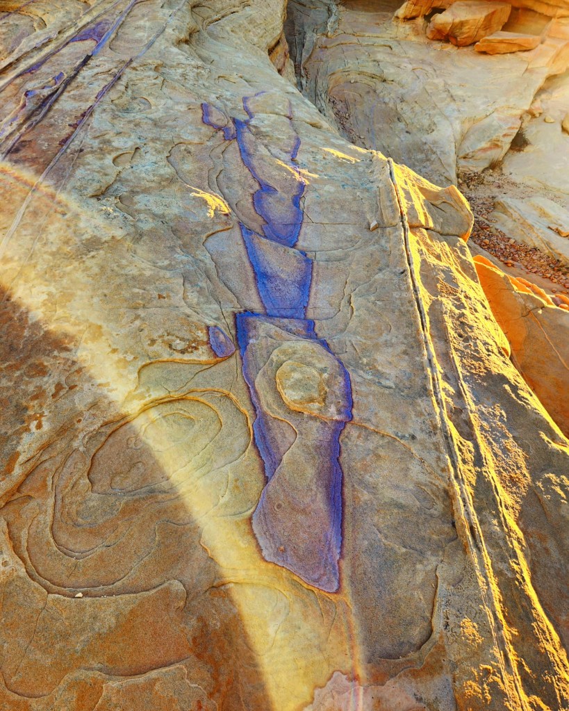 I’ve had a lot of great desert bathing experiences but most recently I have been camping in Valley of the Fire State Park over the Winter Holidays each year. I found a spot my first time there that I visit every time. It’s about a mile hike off the road, not really on a trail, where there’s a rock finger sliding up out of the ground. At the base there is the most amazing purple rock and it leads up to wind blasted sandstone with various colored lines running through it. Sitting on the back side, in the shade near sunset you can’t hear the cars and the desert opens up in front of you in every direction and in every imaginable rock color, really spectacular.
