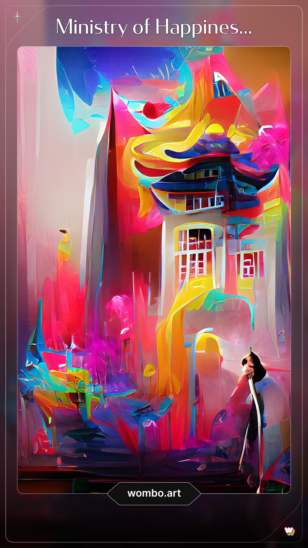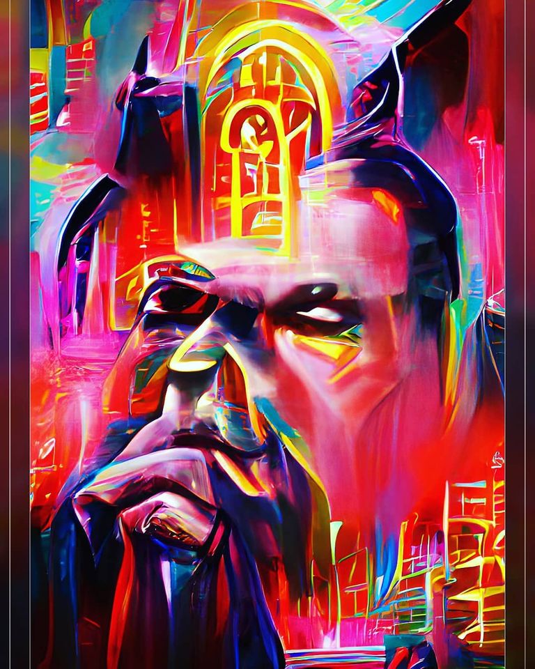 One last note, first a term synesthesia. Synesthesia refers to a condition where someone’s senses effectively get cross wired. So for instance a color could have a taste, or a sound could cause a visual experience. So while scrolling on Twitter yesterday I saw something, there is an AI at wombo.art that will draw and image of your username or anything really, sort of like an AI with synesthesia. Below is what it drew for The Ministry of Happiness, the image at the top is how it drew Rev Kane.